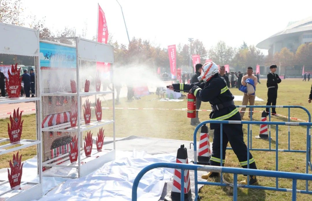 此次运动会设置了理论测试、原地着装、水带接力、穿越火场烟雾、火场救援、灭火打靶6个比赛项目,我校学子与各高校选手同台竞技、比拼对决,展现了出色的应急处置能力和团队协作精神,充分彰显我校学子的责任担当与良好风貌。