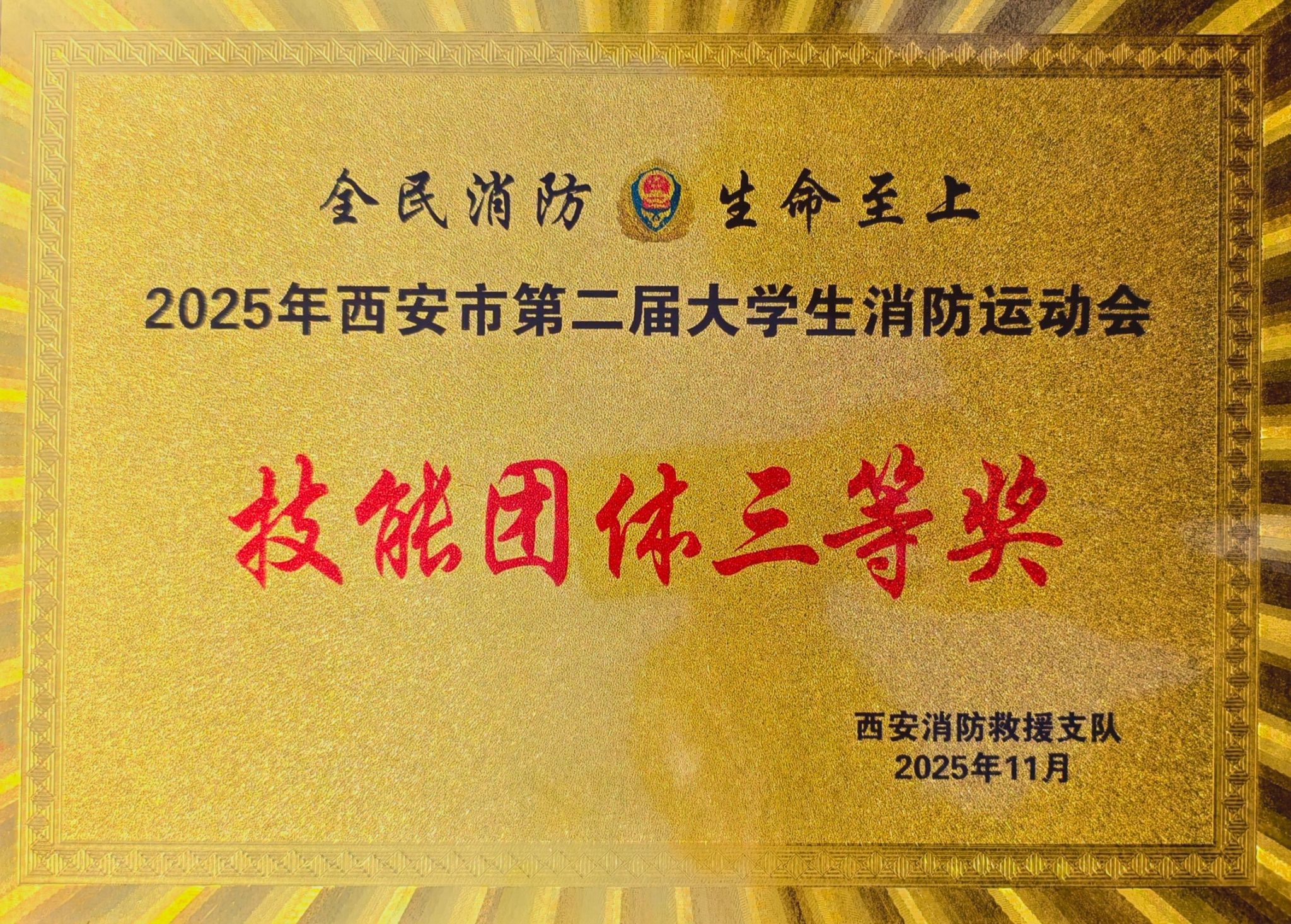 11月15日上午,2025年西安市第二届大学生消防运动会在西北工业大学拉开帷幕。本次赛事由西安市消防救援支队主办,西北工业大学、高新区消防救援大队联合承办,吸引全市39所高校、503名大学生同台竞技。我校学生处与保卫处精心组织,选派9名学生代表参赛并斩获理论团体三等奖、技能团体三等奖两项荣誉。