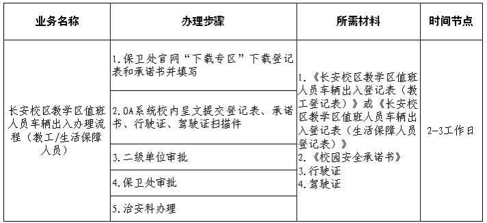 附件1: 长安校区教学区值班人员车辆出入登记表(教工登记表).xlsx(OA线上办理)